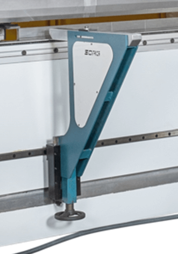 O CNC controla um sistema que compensa as flexões das travessas inferiores da máquina. Esse sistema permite que a parte central da travessa tenha o mesmo ângulo de dobra que as suas extremidades, formando um arco uniforme. Assim, a dobra fica com o mesmo grau em toda a sua extensão.
